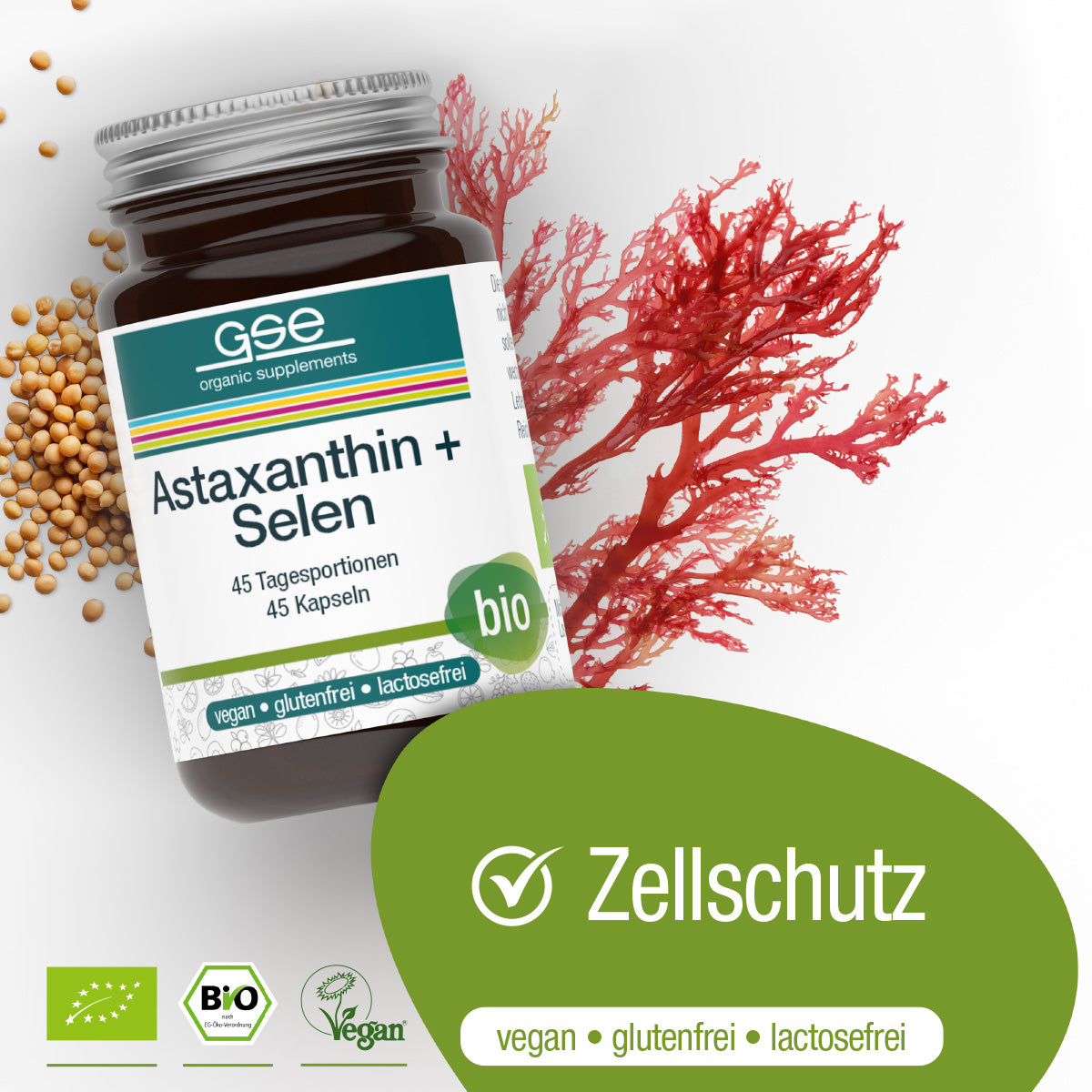 Die für unsere BIO Astaxanthin+Selen Kapseln verwendeten Zutaten stammen alle aus biologischem Anbau.