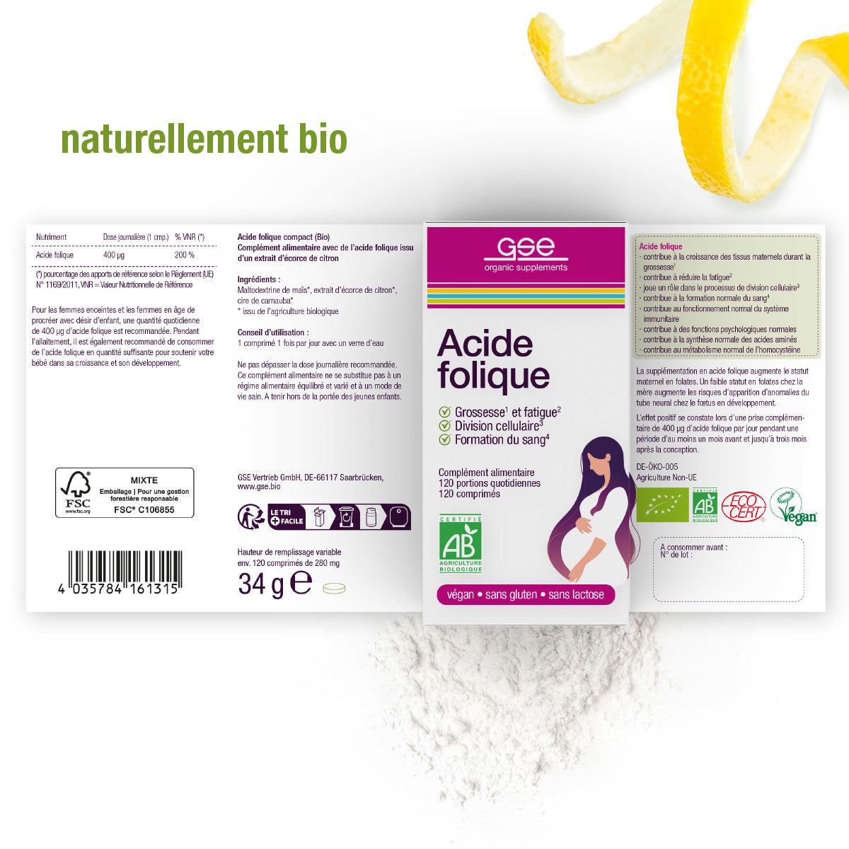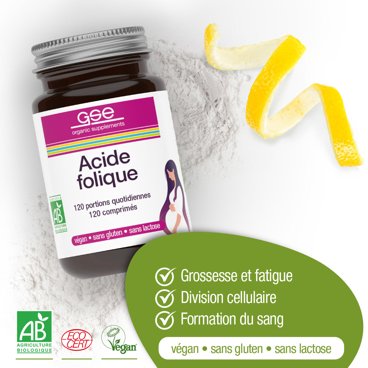 Acide folique GSE Compact - biologique et bioactif ; exactement comme la nature l'a prévu.