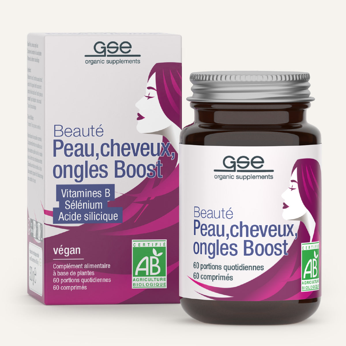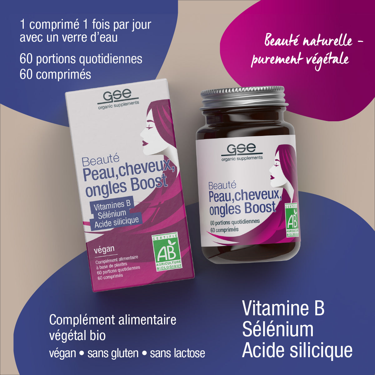 Beauté peau, cheveux, ongles Boost de GSE : Complément alimentaire végétal avec de la silice, du sélénium et des vitamines B
