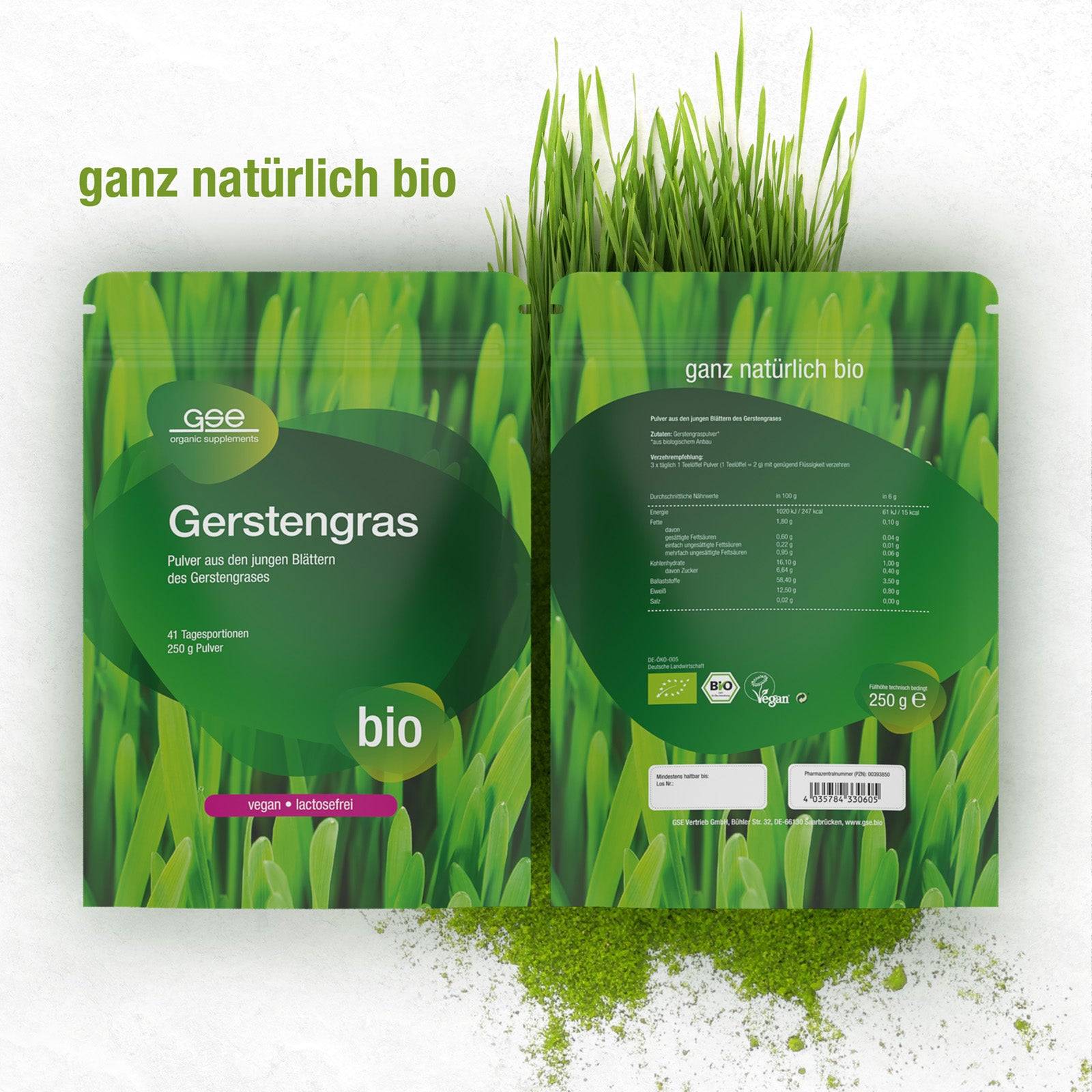 La culture de l'herbe de céréales se fait exclusivement sur des terres contrôlées et certifiées bio. Celles-ci sont maintenues particulièrement saines et riches en nutriments grâce à une culture durable et à une gestion douce. La fertilisation de qualité est obtenue uniquement par la rotation des cultures et les engrais verts. Les zones de culture comprennent des terres certifiées, riches en nutriments et idéalement situées. L'herbe des céréales sort directement du champ pour être transformée avec soin.